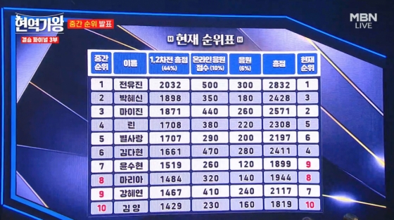 이어 8위 강혜연, 9위 윤수현, 10위 김양 순이었다.
