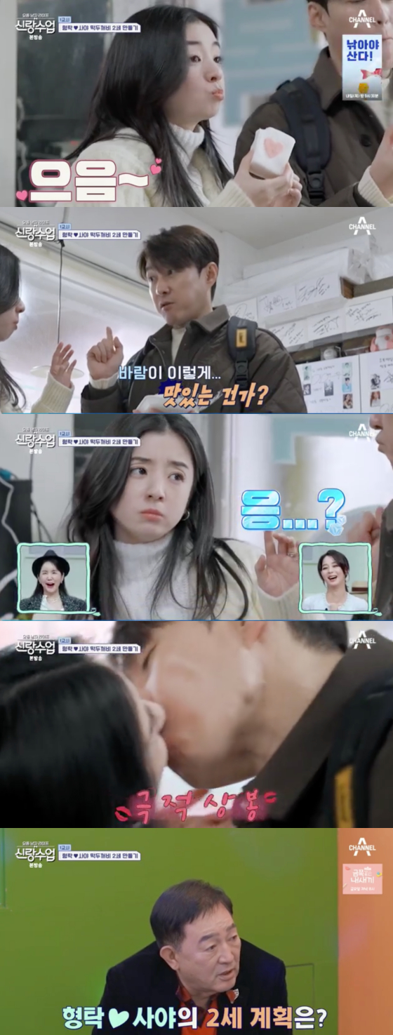 심형탁과 사야는 이어 가래떡을 시식했다. 사야는 길쭉한 가래떡이 나오자 깜짝 놀랐고, 심형탁은 사야가 문 가래떡의 반대쪽 끝을 물며 가래떡 키스에 도전했다. 당황한 사야는 계속 가래떡을 늘렸지만 심형탁은 사야에게 돌진해 끝내 키스하며 스튜디오를 후끈하게 했다.