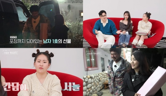 앞서 '솔로민박'은 '데이트권' 미션으로 '로맨스 굳히기' 혹은 '로맨스 뒤집기'에 돌입했던 터. 이날 14기 옥순은 '데이트권'을 획득한 남자 1호를 찾아가, "저 차에 놓고 있는 것이 있는데..."라고 조심스럽게 불러낸 뒤, "(아까 데이트에서 언급했던) 선물을 주셔야지"라고 말한다. "전 세계에 단 하나뿐이라 절대 뭔지 못 알아맞힐 것"이라고 호언장담했던 남자 1호의 선물을 마침내 건네받은 14기 옥순은 선물을 확인하더니, "이게 뭐야, 진짜 웃겨"라며 웃음을 빵 터뜨린다.