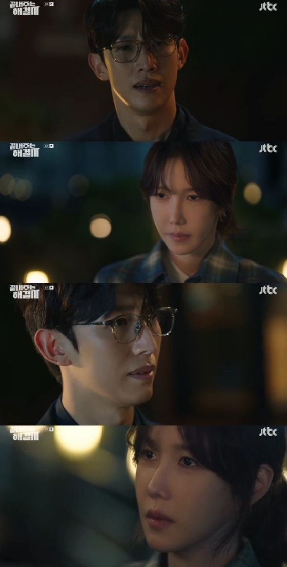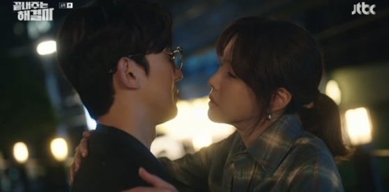 15일 방송된 JTBC 수목드라마 '끝내주는 해결사' 6화에선 김사라(이지아 분)와 동기준(강기영 분)이 입술을 맞대는 장면이 그려졌다.