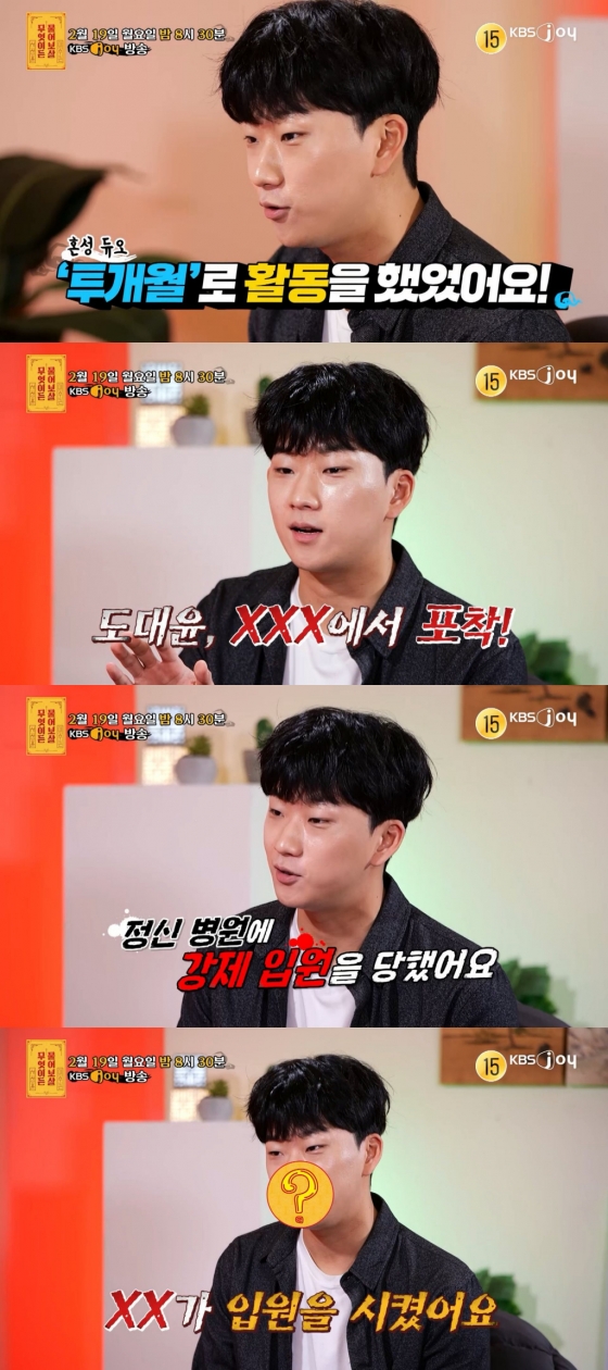 오랜만에 방송에 등장한 도대윤은 "사건이 있었다"라며 눈코 뜰 새 없이 바쁘게 활동하던 시절 우연히 찍게 된 사진 한 장이 기사를 통해 일파만파 퍼지게 되면서 이미지에 큰 타격을 입어 힘든 시간을 보냈고, OO에 의해 정신 병원에 강제 입원까지 당하며 두 달간 치료를 받았다고 털어놔 두 보살을 놀라게 했다.
