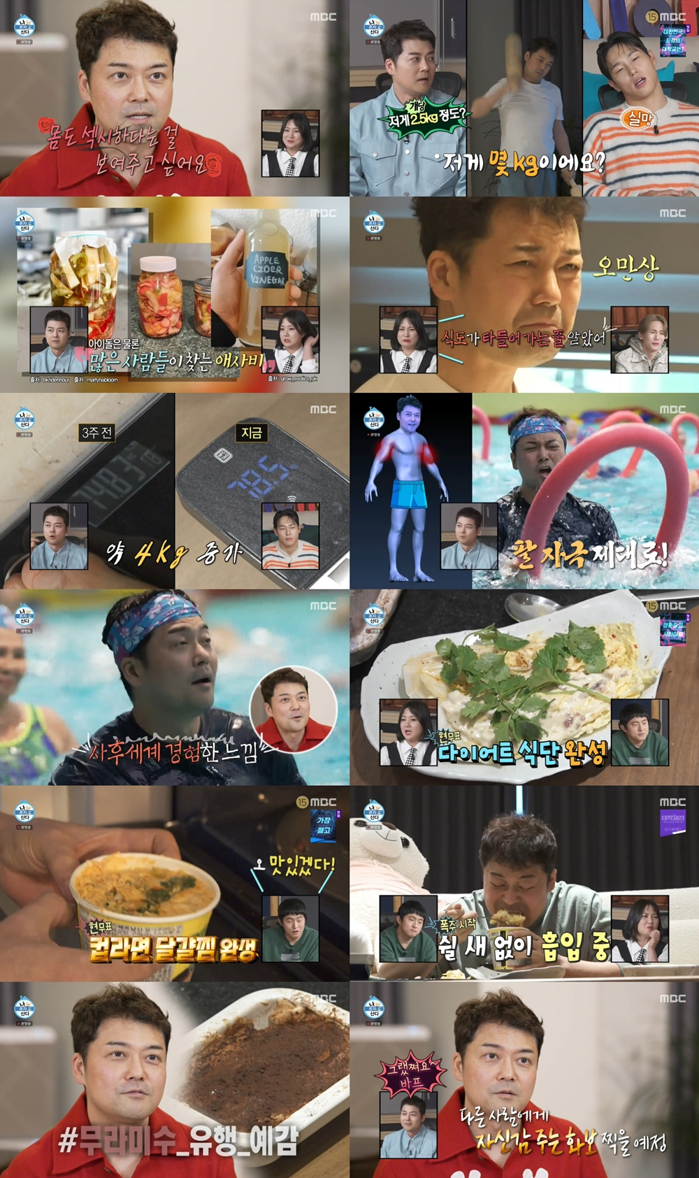 아쿠아로빅 지옥에 빠져 전신 녹초 상태로 귀가한 전현무는 MZ 인기 다이어트 음식인 알배추 요리와 컵라면 달걀찜, 두부 티라미수로 다이어트 식단을 챙겼다. 그는 "다른 사람에게 자신감을 주는 화보를 찍겠다"라며 운동과 식단으로 달라질 자신의 변화를 기대케 했다.