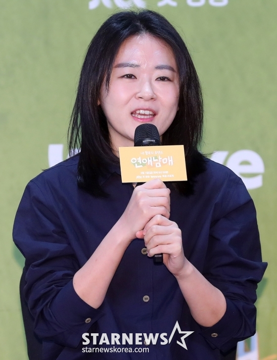 이진주 PD가 21일 오전 경기 고양시 소노캄 호텔에서 진행된 JTBC X 웨이브 예능 '연애남매' 제작발표회에 참석해 인사말을 하고 있다. /사진=김창현 기자