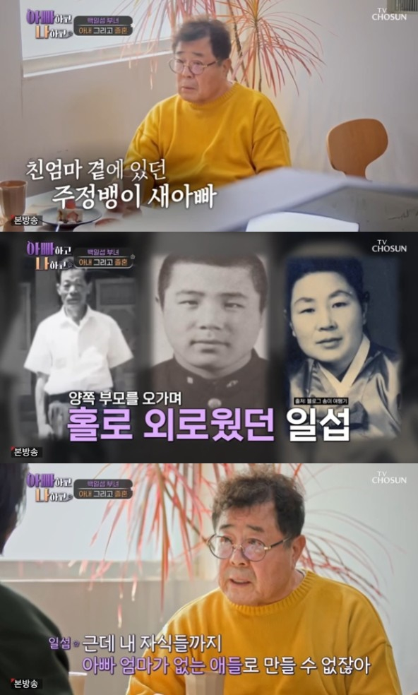 그러자 백일섭은 "오늘만 이야기 할 거다. 네가 싫어하니까, 네 엄마 이야기를 아주 조금만 섞어서 이야기를 할 거다"라며 아내에 대한 이야기를 꺼냈다.