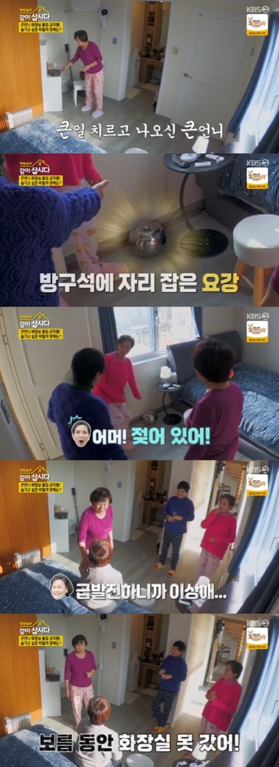 22일 방송된 KBS 2TV 예능 프로그램 '박원숙의 같이 삽시다 시즌3'에서는 아침부터 화장실이 만실이 되자, 안문숙이 큰언니 박원숙의 방을 찾는 모습이 공개됐다.