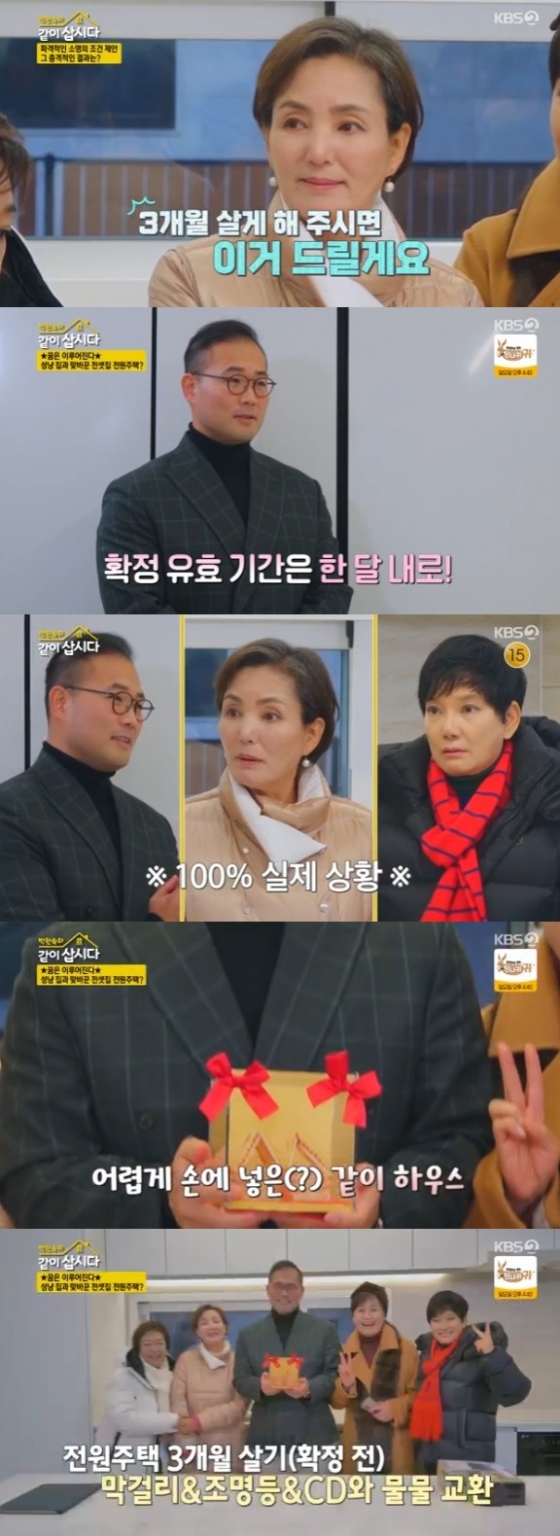 박원숙은 공인중개사에 "난 여기에 살고 싶다"며 "이 집이 너무 마음에 든다. 당장 이사하기엔 조정할 일이 산더미다. 3개월 살이 유효기간은 언제까지냐"고 물었다. 이에 공인중개사는 "확정 유효 기간은 한 달 내로 해달라"며 넉넉하게 기간을 요청해 박원숙을 안심시켰다.