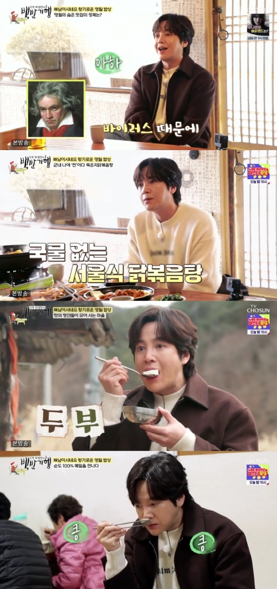 장근석은 23일 방송된 TV조선 시사교양 프로그램 '식객 허영만의 백반기행'(이하 '백반기행')에서 허영만과 함께 영월의 숨은 맛집을 찾아 나섰다.