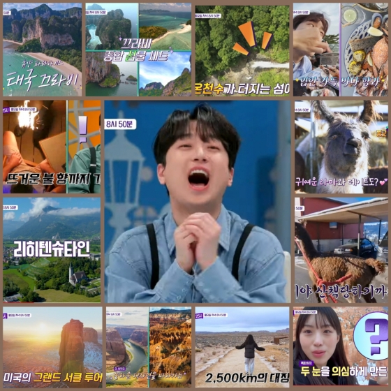 첫 번째 랜선 여행은 태국의 끄라비. 현지 톡파원이 소개하는 투명한 바닷속과 온천수가 터지는 섬, 입안 가득 바다 향이 느껴지는 신선한 해산물에 눈으로 보면서도 아찔한 불쇼까지 이찬원을 비롯한 출연자들은 영상을 보는 내내 "우와"라며 감탄사를 연발했다.