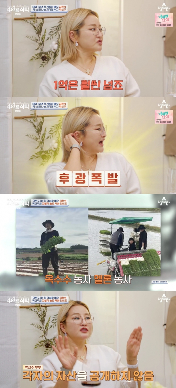 26일 방송된 채널A '절친 토큐멘터리ㅡ4인용식탁'(이하 '4인용식탁')에는 김현숙이 주인공으로 출연했고, '절친' 전수경, 박선주, 김산호가 게스트로 등장해 다양한 이야기를 나눴다.