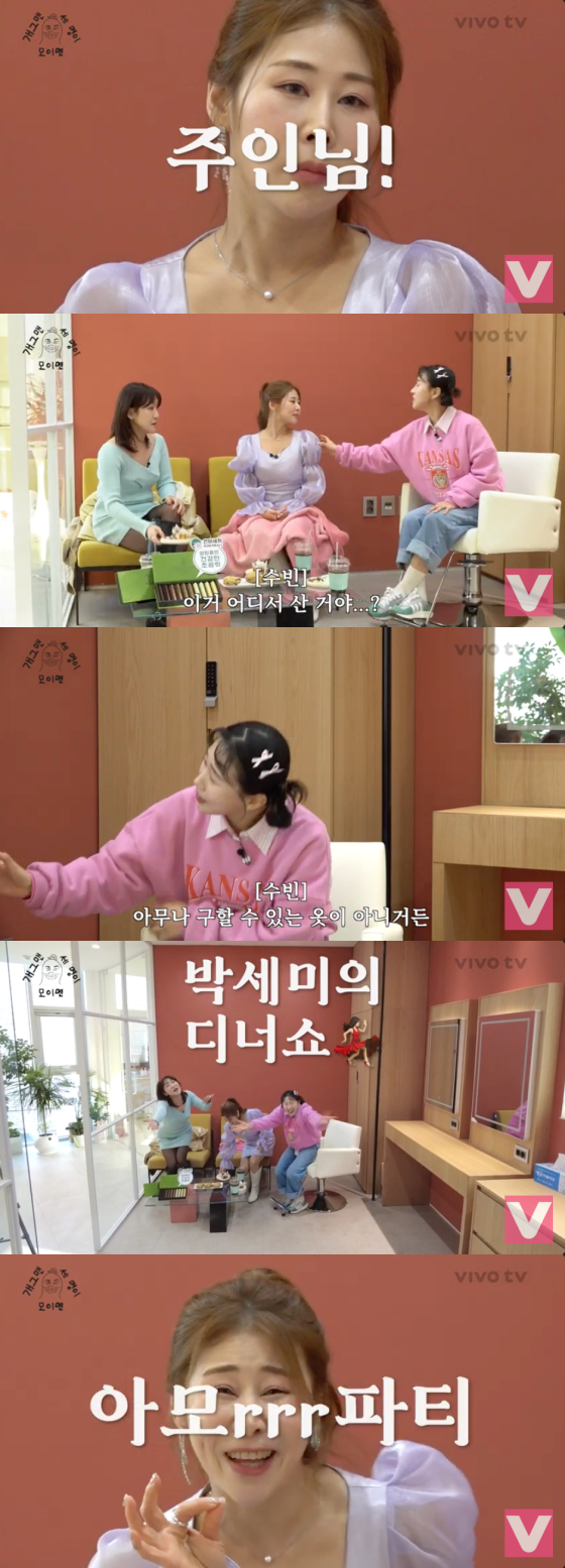 박세미는 이에 "성수역 지나가는데 '주인님'이라고 부르더라. 바로 '얼마냐'고 했다"고 설명해 현장을 당황시켰다. 이수빈은 "이렇게 화려하게 입을 줄 몰랐다"고, 김지유는 "오늘 거의 디너쇼다"고, 박세미는 한 술 더 떠 "잘나가는 트로트 가수 같지 않냐"고 말해 웃음을 안겼다.