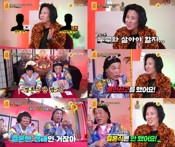 "전 남편은 받아줄 생각도 없는데 선택은 한 가지뿐 아닌가?"라며 의문을 제기한 이수근에게 사연자가 "스리랑카 남자랑 결혼하는 게 맞는 거죠?"라는 사연자 때문에 답답함에 어이없는 웃음을 보이던 서장훈과 이수근은 "혼인신고하면 부부다"라고 확실하게 의미를 정리해 줬고 "어쩐지 여보라고 부르더라"라며 이제서야 이해한 사연자에 이수근이 박장 대소했다.