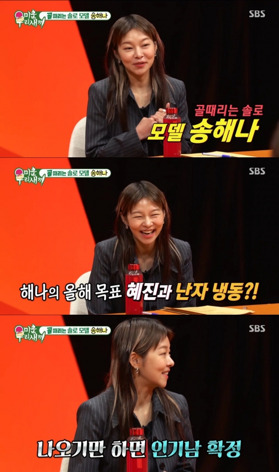 이날 스튜디오에는 '나는 솔로', '골 때리는 그녀들'에서 활약하며 시청자들의 사랑을 듬뿍 받는 모델이자 방송인 송해나가 스페셜 MC로 등장했다. '미우새' 한혜진과 절친인 송해나는 "나중에 생각이 바뀔 수도 있는거라, 아직 안 간 혜진 언니와 올해 난자를 냉동시킬 생각이 있다"라고 밝혔고, 혜진 母는 반색하며 "혜진이 좀 많이 설득시켜 봐라"라고 화답해 웃음을 자아냈다. 이어 송해나와 혜진 母는 스튜디오에서 카리스마 있는 모델 워킹을 선보여 모두의 감탄을 자아냈다.