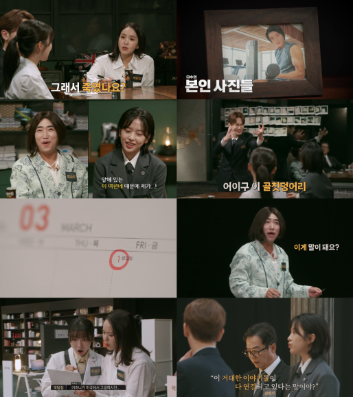 죽은 회장의 아내 '장사모' 장동민은 시종일관 꼰대력 충만한 멘트로 웃음을 유발했고, 사원 출신에서 초고속 승진으로 '풍무그룹'의 2인자에 오른 '키사장'과 출생의 비밀을 간직한 '곽유진'은 '풍무그룹'을 향해 들끓는 욕망을 내비치며 팽팽하게 대립했다. 그룹 내 신약 연구를 담당하는 '주연구' 주현영은 태국에서 툭툭에 치여 병원에 입원했다는 독특한 알리바이를 주장하며 <크라임씬> 시리즈 특유의 B급 감성을 자아냈다.