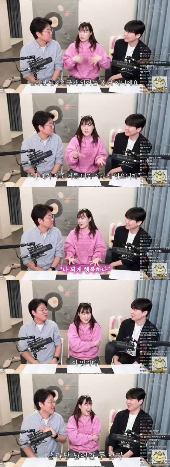 이은지는 "그냥 연애해야 한다고 생각한다. 다 마음에 들 수는 없다"면서도 "방법이 하나 있긴 하다"고 밝혔다. "옷을 사주고 입어 봐'라고 한 다음 '네가 내가 사준 옷을 입으니까 너무 행복하다. 사랑받는 기분이다'고 해라"는 것.
