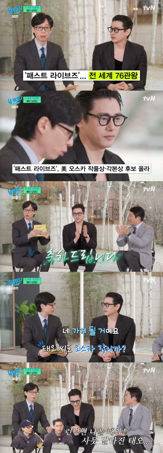 '유퀴즈' 배우 유태오가 미국 오스카 초청 소식을 전했다.