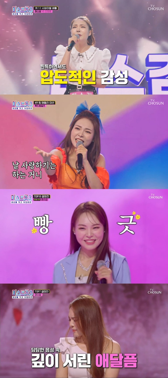 '미스트롯3' 미스김이 탁월한 실력을 인정받으며 우승 후보로 떠오르고 있다.
