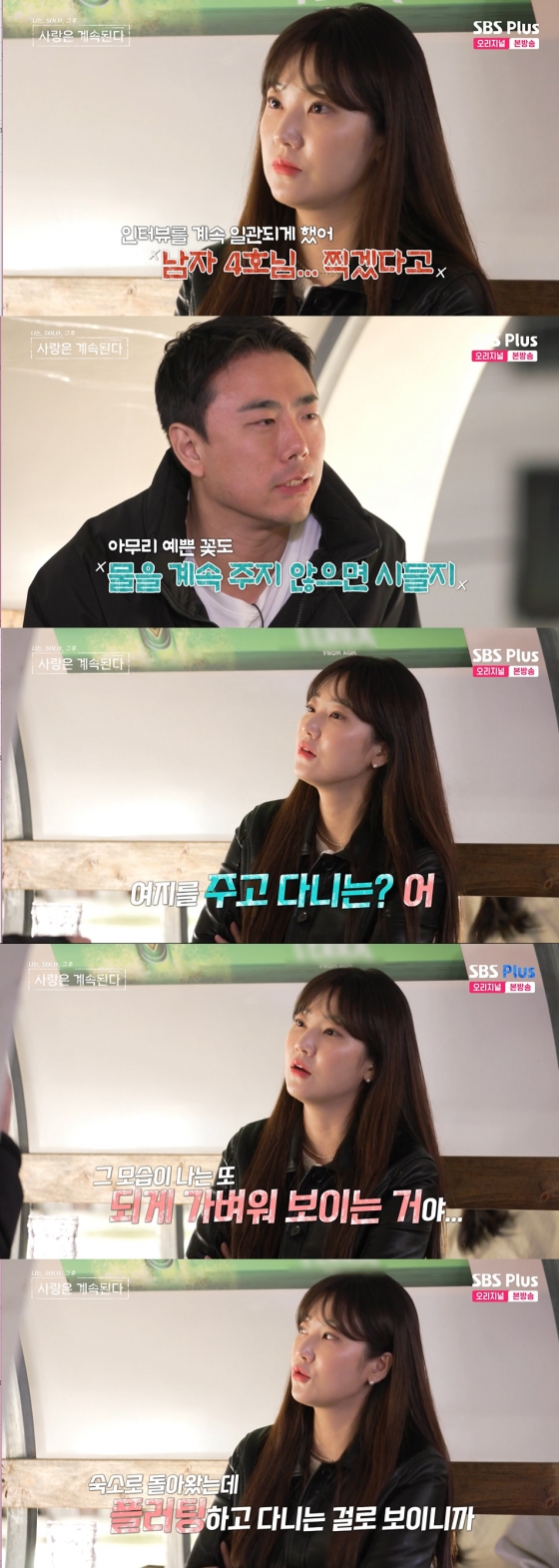 'SBS플러스, ENA 연애 리얼리티 프로그램 '나는 SOLO(솔로), 그 후 사랑은 계속된다'(이하 '나솔사계')에서 9기 옥순이 남자 4호의 태도를 돌직구로 지적했다.