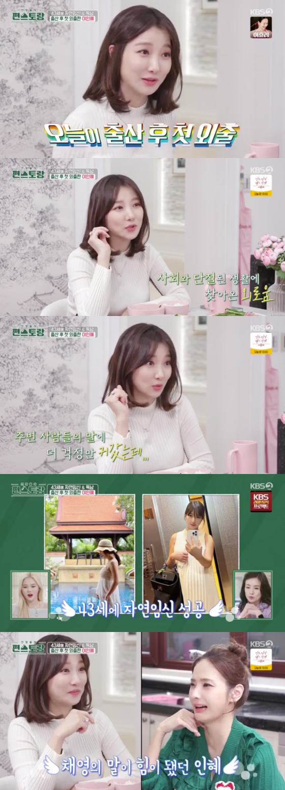 이인혜는 "오늘 출산하고 첫 외출이다"며 지난 50일 간 사회와 단절되어 외로웠다고 밝혔다. 또한 "사람들이 나이 때문에 '할 수 있겠냐'고 했는데 그래도 한번은 자연임신을 노력해봐야겠다 싶어서 시도했다"며 43세에 자연임신하게 된 비화를 밝혔다.