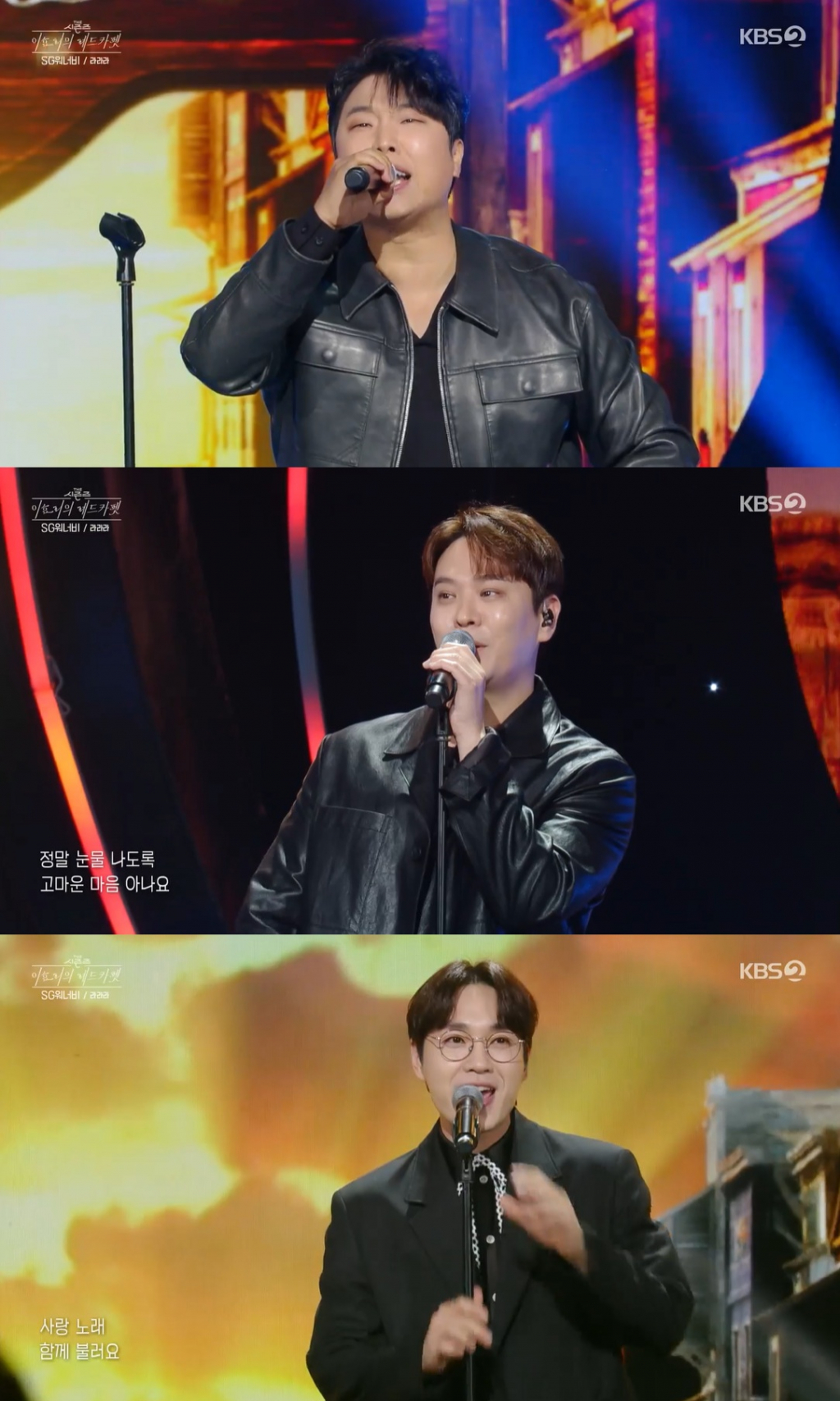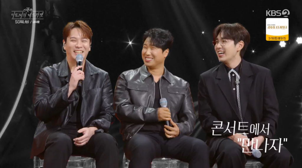 이날 SG워너비는 "올해 데뷔 20주년을 맞이했다. 우리나라를 대표하는 3인조 보컬리스트다"라는 이효리의 소개에 히트곡 '라라라'를 부르며 무대에 올랐다. 세 사람은 다소 긴장한 듯 어쩔 줄 몰라했다. 알고 보니 오랜만에 방송 출연이었던 것.