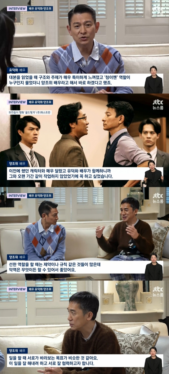 이어 양조위는 "이전에 한 역할과 달랐고 유덕화 배우가 같이 했다. 오랜 기간 같이 일하지 않아서 한다고 했다. 악역은 정말 좋았다. 선한 역할을 할 땐 제약이나 규칙이 있는데 악역은 무엇이든 할 수 있어서 좋다"라고 출연 이유를 밝혔다.