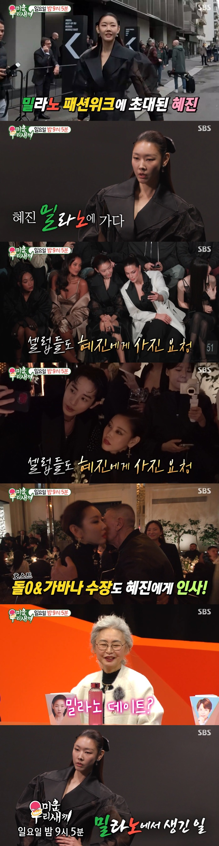 한혜진은 이후 밀라노 밤거리를 걸은 후 한 레스토랑에 들어가 눈길을 끌었다. 그곳에서 그를 반기는 남성의 목소리가 들렸고, 한혜진은 쑥스러워하며 웃는 모습으로 다정한 분위기를 전했다.