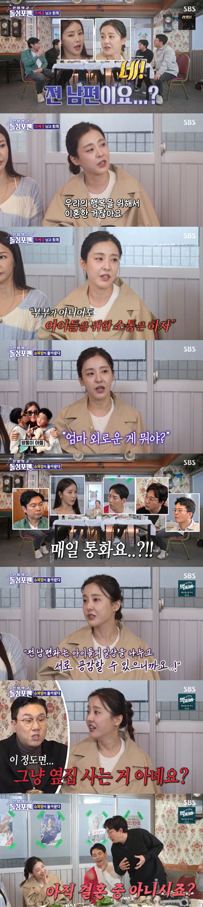 모두가 놀라는 반응을 보이자 박은혜는 "우리의 행복을 위해서 이혼한 거지 않냐. 부부가 아니어도 아이들을 위해 소통하자고 했다"고 말했다.