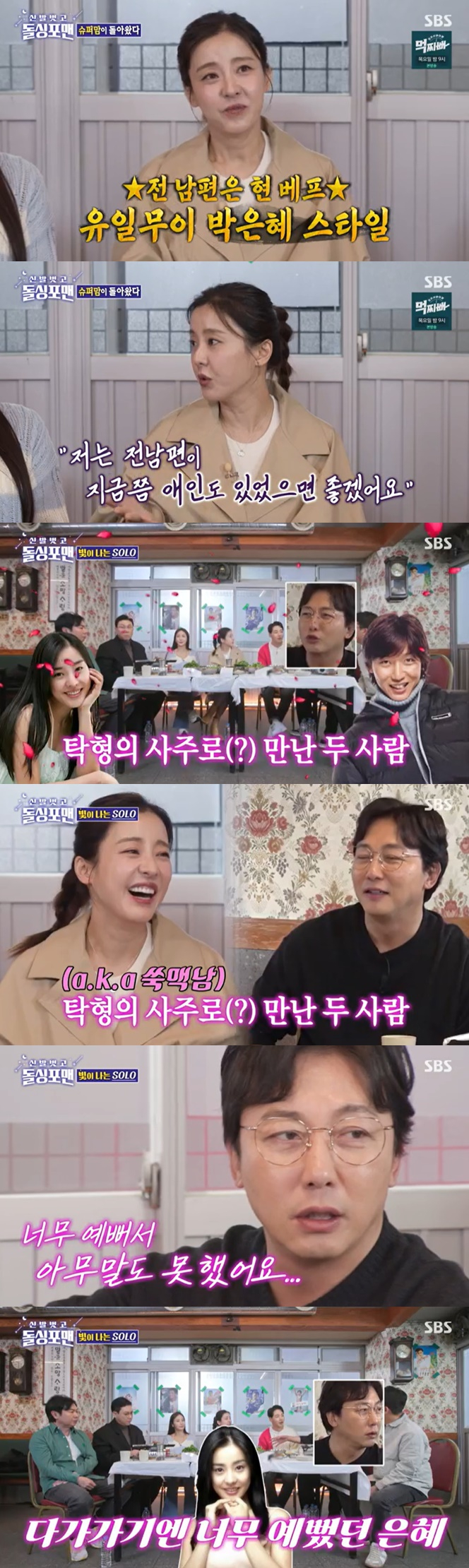 이날 박은혜와 탁재훈이 과거 소개팅을 한 적이 있다고 깜짝 고백을 해 눈길을 끌었다. 탁재훈은 "25년 전에 내가 솔로일 때 친구가 예쁜 친구가 있다고 소개해줬다. 은혜가 나왔는데 너무 예쁜 거다. 그래서 내가 아무 말도 못 했다. 얘가 예전엔 왕조현이랑 똑같이 생겼다"고 했고, 박은혜는 "저는 오빠가 과묵한 줄 알았다"고 말했다.