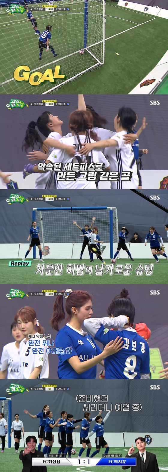 'FC백지훈'은 이혜정이 얻어낸 페널티킥으로 동점골 기회가 만들어졌고, 키커로 김보경이 나서 침착하게 동점골을 성공시켰다. 골키퍼 케시와 한 팀으로 오래 경기를 뛴 나티가 케시의 약점을 사전에 조언했고, 그대로 슈팅한 것이 제대로 통했다.