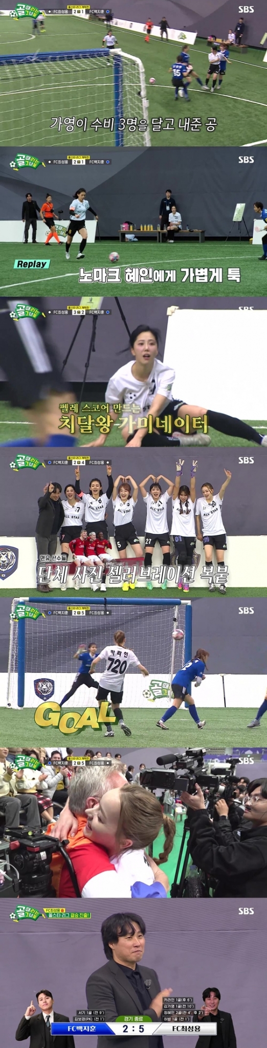 'FC최성용'은 후반전 막바지 카라인의 깜짝 중거리 골로 'FC백지훈'의 추격 의지를 완벽히 꺾었다. 득점 후 카라인은 네덜란드에서 찾아온 아버지에게 뛰어가 안기며 훈훈한 장면을 선물했다. 'FC최성용'은 5대 2 스코어로 승리를 거뒀고, 올스타 리그 결승전 진출을 확정지었다.