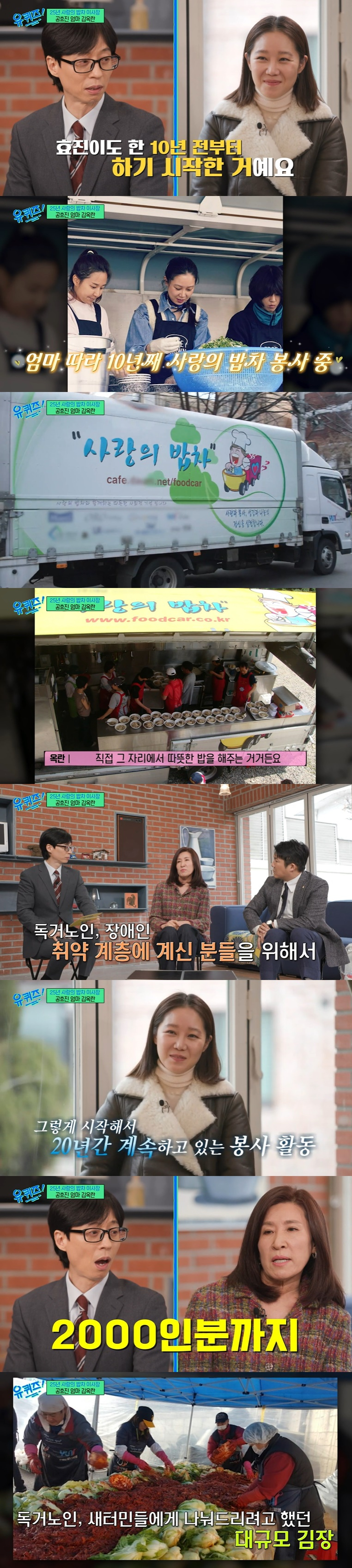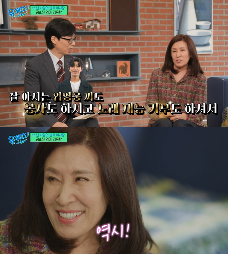 지난 3일 방송된 tvN '유 퀴즈 온 더 블록'(이하'유퀴즈')에서는 '사랑의 밥차' 이사장이자 공효진의 어머니인 김옥란 씨가 게스트로 출연했다.