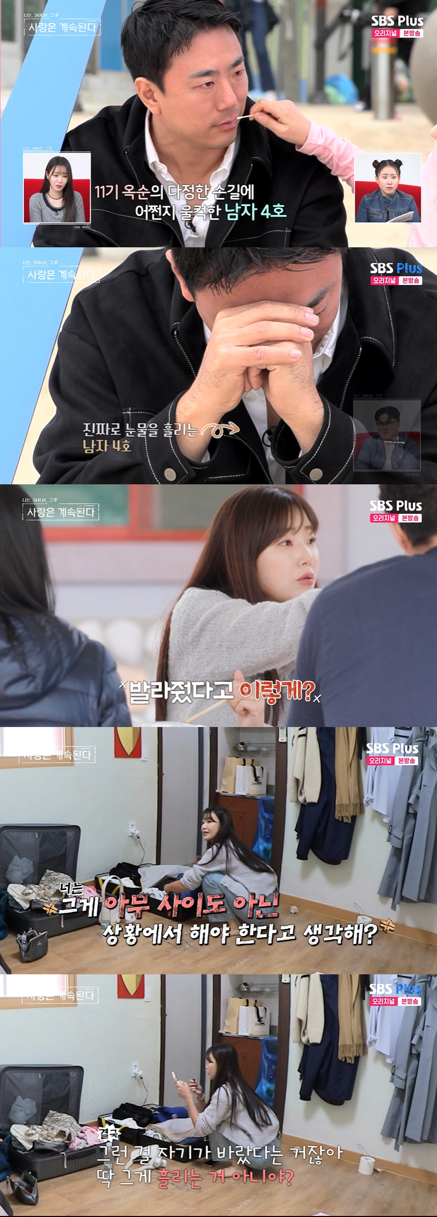 11기 옥순은 면봉에 다시 립밤을 묻혀 "한 번 더 해볼게요"라고 한 후 남자 4호의 입술에 직접 립밤을 발라줬다. 이에 남자 4호는 눈을 질끈 감고 울컥한 모습을 보였다. 그는 "나 살짝 눈물 날라 그래"라며 큰 숨을 내쉬었다. 11기 옥순이 "겨우 립밤에 감동받으신 거냐"라고 하자 남자 4호는 "눈물 안 보이냐. 겨우 참았다. 이 사람 참 좋은 사람인 것 같은데.."라며 애써 눈물을 삼키다 결국 뚝뚝 흘렸다. 이는 11기 옥순을 적잖이 당황케 했다.