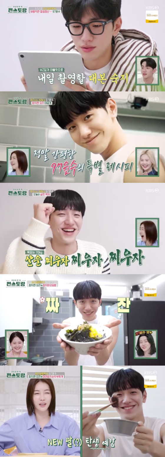 이어 지난 '편스토랑' 첫 출연 당시 살림 만렙 일상을 공개하며 뜨거운 화제를 모은 최연소 편셰프 남윤수가 등장했다. 붐은 "지난 출연 때 맘카페에서 난리 났다. 어떻게 이렇게 살림을 잘 하냐고"라 환호했고, 한해는 "'MZ 살림 박사'라는 별명도 생겼다"고 덧붙였다.