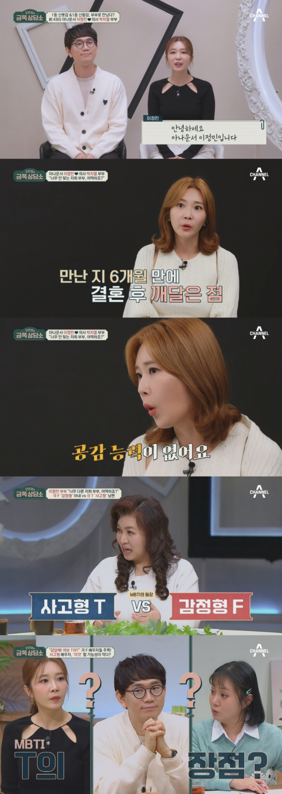 프리랜서 아나운서 아내 이정민이 남편인 박치열에 대해 "공감능력 제로"라며 한탄한다.