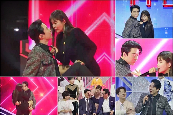 무대에 오른 에녹과 조정민은 '코파카바나'를 선곡, '후끈후끈 섹시도발' 무대로 탄성을 이끌어낸다. 시작부터 스킨십은 물론 섹시한 웨이브가 이어지는 커플 댄스로 현장을 열광케 한 것. 하지만 무대에 누운 에녹에게 조정민이 다가가는 자극적인 제스처가 나오자, '장미단' 식구들이 황급히 정동근의 눈을 가리는 모습으로 폭소를 안긴다. 과연 세 번째 만남으로 제대로 된 설렘과 섹시를 선사할 에녹과 조정민의 열정적인 무대는 어떤 모습일지 관심이 모인다.