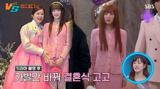 이유비는 '7인의 탈출'에서 해당 의상을 직접 입고 출연하기도 했다고 털어놨다. 그는 "(촬영) 끝나자마자 바로 (결혼식에) 가는 거여서 그대로 가서 가발만 바꿔 쓴 것"이라며 "결혼식 사진이 떴는데 (네티즌들이) '내가 동생을 멕이려고 그랬다'고 하더라. '이게 무슨 소리지' 싶어 너무 놀랐다"고 당황했던 당시 심정을 털어놨다.