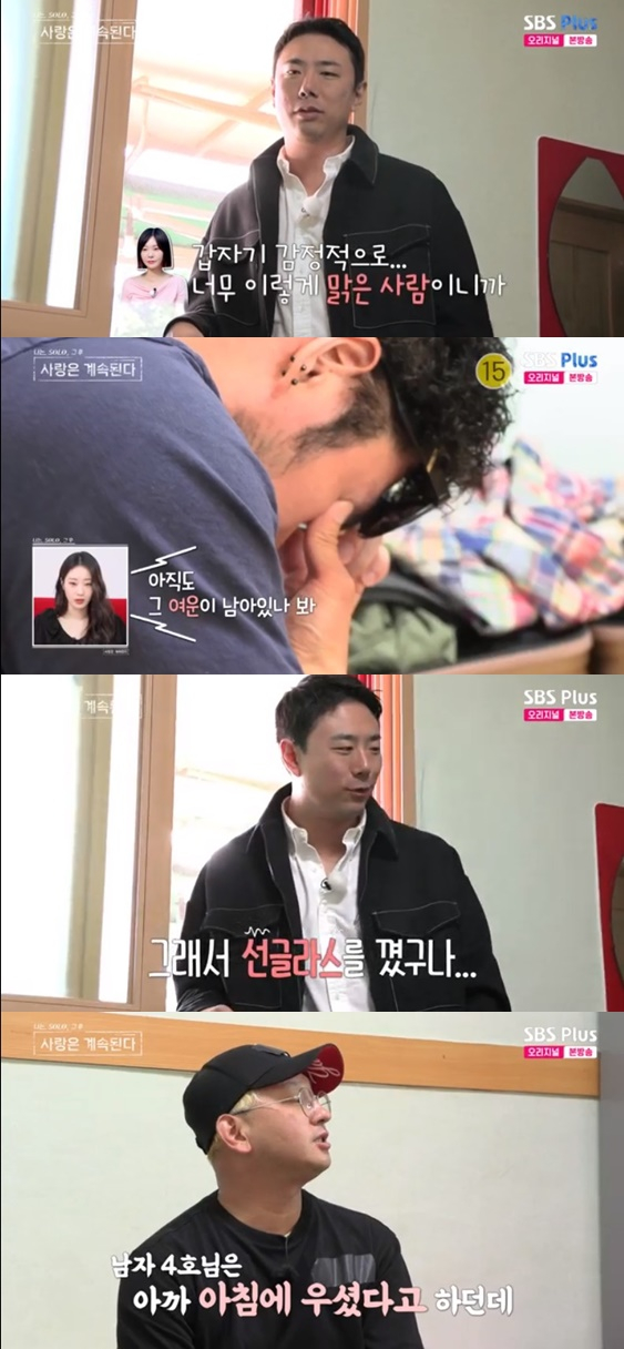 역시 눈물을 흘린 남자 4호는 "14기 옥순 앞에서 전혀 예상치도 못한 눈물이 나왔다. 갑자기 감정적으로 울었다. 너무 맑은 사람이니까 눈물이 나더라. 그 사람의 친절함과 맑음에 놀라서 나온 눈물이다"라고 설명해 눈길을 끌었다.