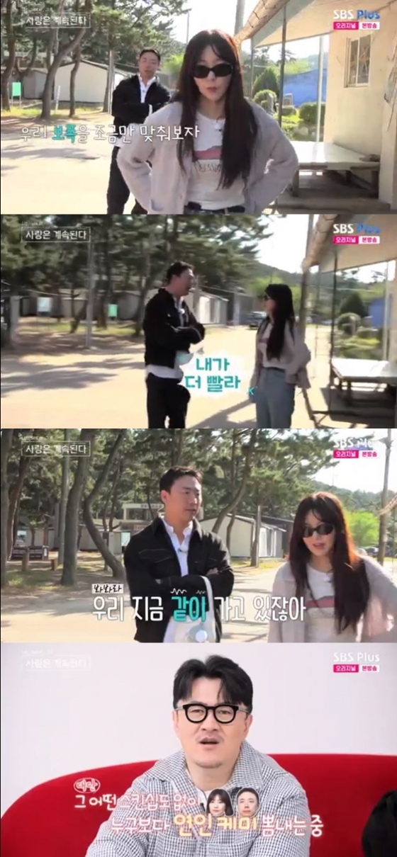 화가 나서 앞서가는 9기 옥순에게 "나란히 걷자. 보폭을 맞춰서 걷자"고 불러 세운 남자 4호. 그런 그에게 툴툴거리면서도 다가가는 9기 옥순의 모습을 본 데프콘은 "스킨십 한 번 하지 않고 이렇게 애인 같기가 쉽지 않다"며 두 사람 사이에 흐르는 기류를 설명해 눈길을 끌었다.