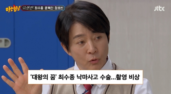이와 관련해 최수종은 "그때는 정말 큰 사고였다"면서 "인간이 교통사고가 나도, 차하고 부딪혀도 부러지지 않는 게 양날개 견갑골이다. 근데 견갑골이 다 깨졌다. 말에서 떨어져서 굴렀다. 어깨뼈부터 견갑골이 다 부러졌는데도 불구하고 진통제를 맞으며 드라마를 끝냈다"라고 밝혔다.