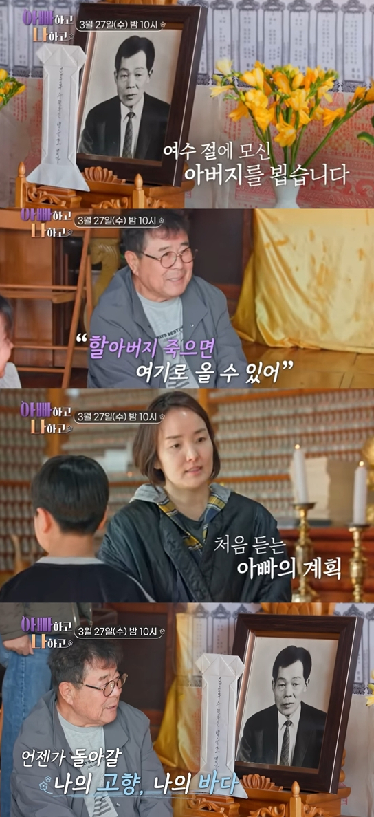 또한 백일섭은 "나는 죽으면 여수 바다로 갈 것 같다. (딸 가족과) 같이 봤던 바다에 유골을 뿌리고... 내가 놀던 바다 좋지 않나"라며 언젠가 돌아갈 자신의 고향 바다를 그리며 덤덤한 소회를 밝혔다. 오는 27일 오후 10시 방송.