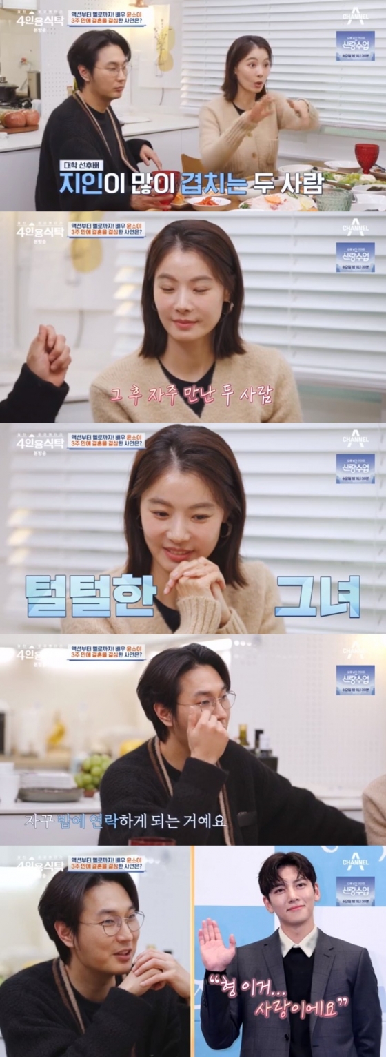 윤소이는 "어느 날 문자가 오더라. '네가 여자로 보인다'라고. 그래서 내가 '문자 잘못 보냈다'라고 말했다. 신랑이 나한테 마음이 있을 거라고 생각을 전혀 하지 않았었다"고 고백했다.