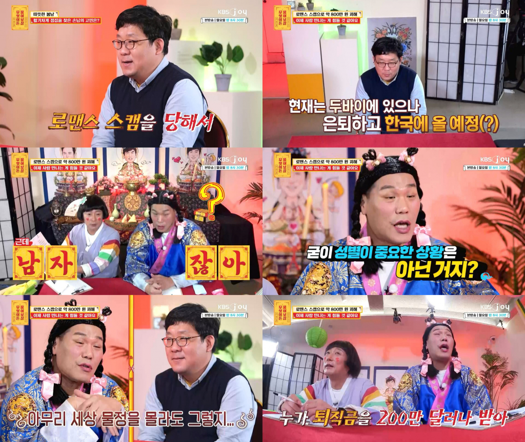 한편, 이날 방송에는 '로맨스 스캠'으로 사기꾼에게 800만 원 상당의 금전적인 피해를 당한 이후 사람을 만나는 게 힘들다는 '모쏠' 남성 사연자도 출연했다.