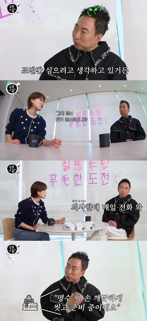 이어 "나도 거의 반 탈모인이다. 머리가 거의 없다. 조만간 심으려고 생각 중이다. 그날 촬영에서 정보를 많이 얻었다. 같이 출연했던 의사가 손 깨끗하게 씻고 기다리겠다고 하더라. 머리 심을 때 중요한 건 의사의 청결이다"라고 고백했다.