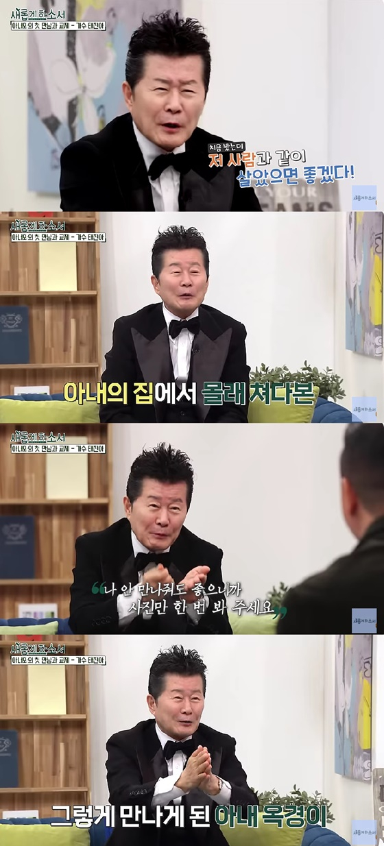 태진아는 "식당에 여성들이 5~6명 들어오는데 옥경이만 눈에 들어오더라. 광채가 나더라. '저 사람과 같이 살았으면 좋겠다'고 생각했다"고 말했다.