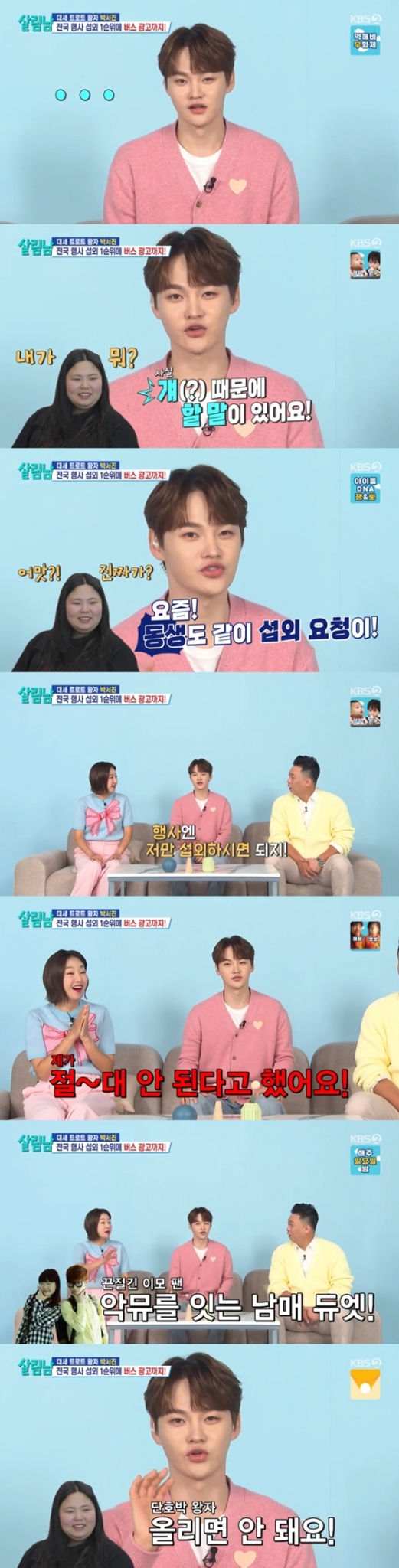 27일 오후 방송된 KBS 2TV '살림하는 남자들 시즌2'(이하 '살림남')에서는 박서진이 MC 박준형-김지혜 부부와 오프닝을 함께 했다.