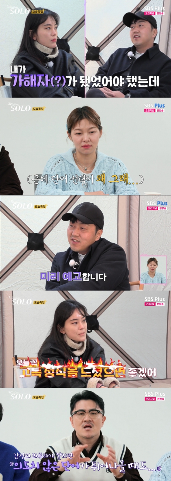 이를 들은 영식은 "내가 기분 나쁜 건 그거다"라며 "내가 가해자가 됐어야 했는데 내가 당사자가 된 게 기분 나쁘다. 내가 가해자였어야 했는데.."라고 했다. 이에 MC 송해나는 "그게 무슨 말이냐. 왜 가해자라는 단어를 쓰냐"라며 단어 선택에 공감하지 못하는 모습을 보였다.