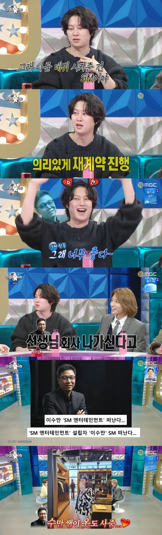 또한 '라스'에서 김희철은 슈퍼주니어의 SM엔터테인먼트(이하 SM) 재계약 비하인드 스토리를 전했다.