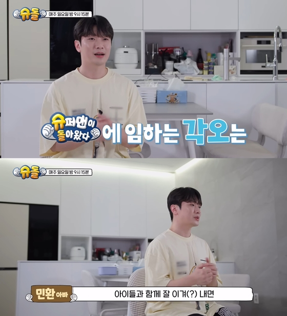 최민환은 '슈돌' 합류 각오에 대해 "아이들한테도 저한테도 조금 더 당당하게"라면서 "서로 잘 이겨 내면, 다들 응원해주시고, 많이 사랑해 주시지 않을까 그런 생각이 들었던 거 같아요"라고 했다.