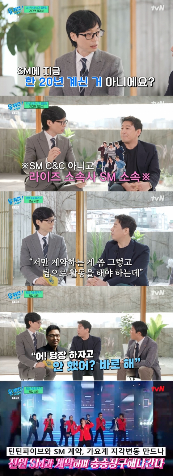 '유 퀴즈 온 더 블럭' 김경식이 SM엔터테인먼트와의 오랜 인연에 대해 밝혔다.