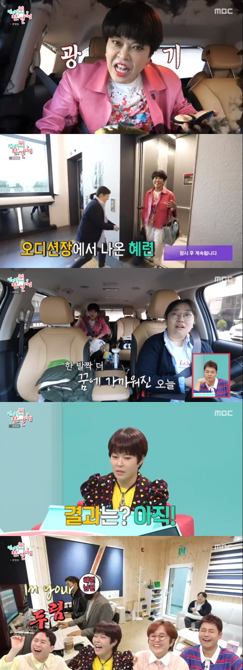 조혜련은' 웃는 남자'와 '팬텀'의 오디션을 위해 고군분투했다. 평소 뮤지컬 배우가 꿈이라고 밝혀온 그녀는 휴대용 가습기를 들고 다니며 발성 연습에 몰두했다. 오디션장으로 이동하는 차 안에서도 자신만의 발성법을 접목해 다양한 소리를 내면서 목을 푸는 그녀의 모습을 지켜본 양세형은 "목 풀다가 다 쉴 것 같다"고 걱정하기도.
