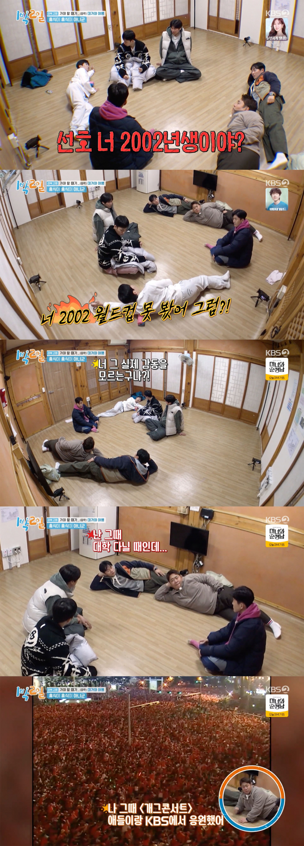 '1박 2일' 멤버들이 '2002 한일 월드컵' 당시를 직접 경험하지 못한 유선호에 충격을 받았다.